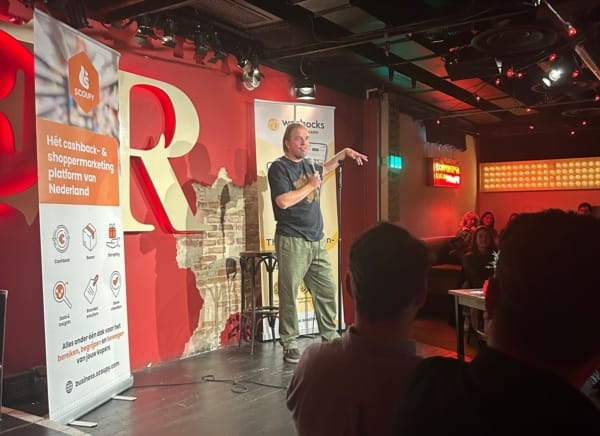 Jan Jaap van der Wal is de eerste stand-up comedian die het kleine podium van Toomler betreedt. Hij vraagt zich af hoe het eigenlijk ooit begonnen is met Scoupy. ‘Heeft iemand een supermarktketen gebeld met het idee om klanten die daar iets gekocht hebben 3 euro terug te geven? Hebben ze toen gezegd; bel eerst die andere maar, als die meedoen, zullen wij er ook over nadenken?’